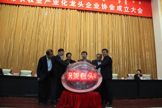 王雨峰副巡視員、烏恩孟和副主任、任福副市長、楊澤繁副主席、林永亮執(zhí)行會(huì)長、余佳榮會(huì)長進(jìn)行啟動(dòng)儀式,祝賀包頭市農(nóng)牧業(yè)產(chǎn)業(yè)化龍頭企業(yè)協(xié)會(huì)成立。
