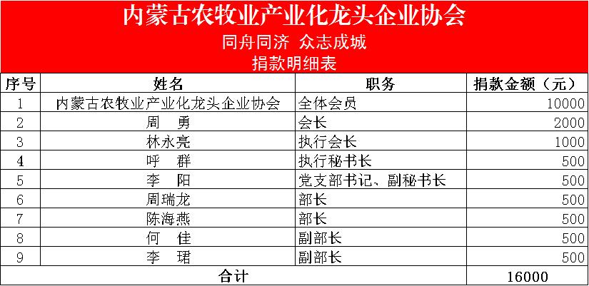 三、“一方有難,八方支援”,截止目前,在協(xié)會會長周勇的帶領(lǐng)下,協(xié)會秘書處共募集抗疫捐款1.6萬元,結(jié)合地方所需,已于2月23日以現(xiàn)款形式捐贈給呼和浩特市紅十字會,用于呼和浩特市疫情防控工作。