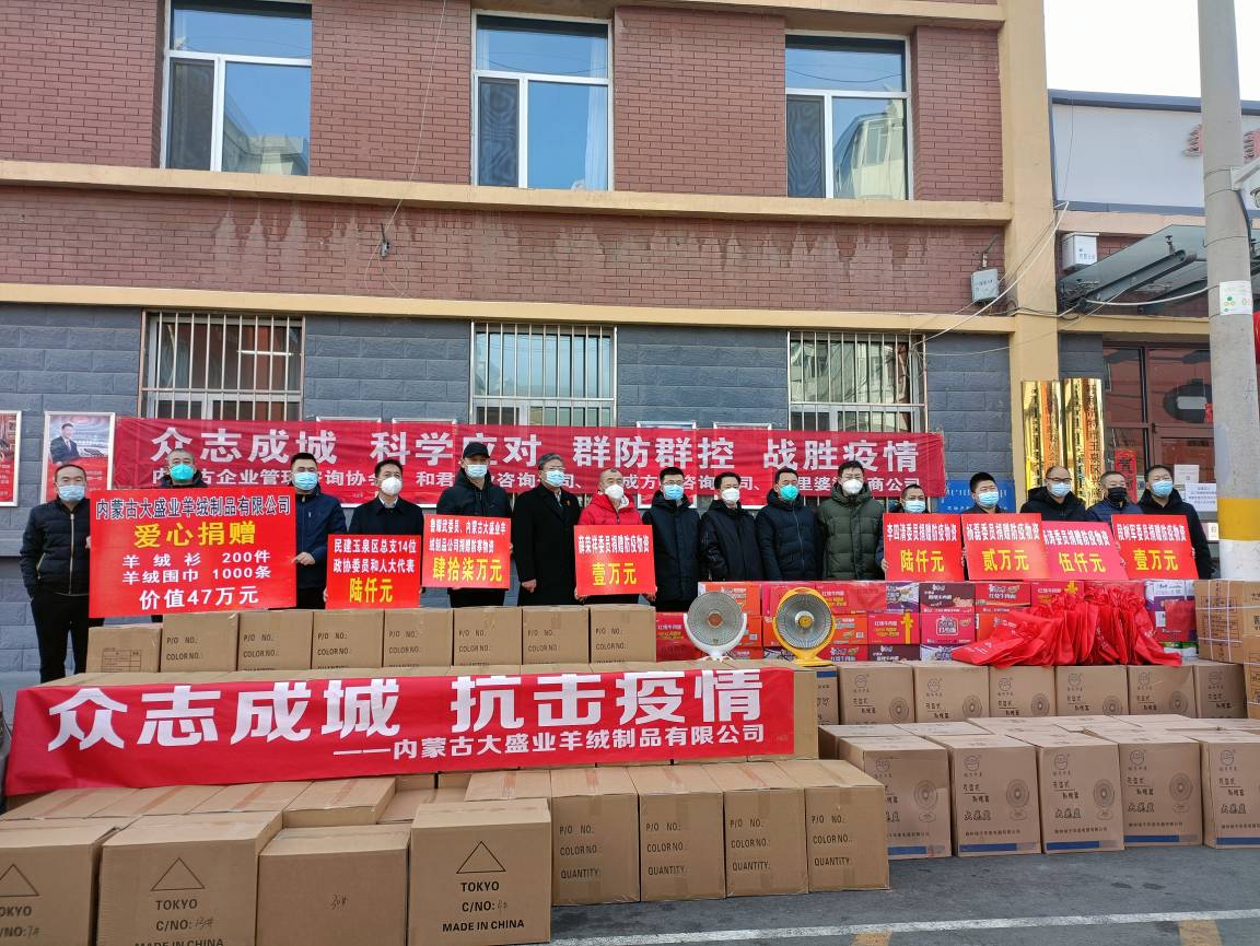 6、副會長單位-內(nèi)蒙古大盛業(yè)羊絨制品有限公司:2月21日,將價(jià)值47萬元的200件羊絨衫、1000條羊絨圍巾捐贈給玉泉區(qū)紅十字會,為抗疫人員送去溫暖。
