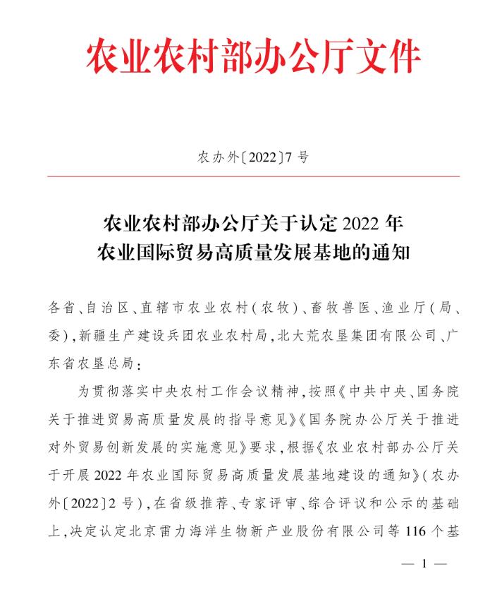 祝賀:我區(qū)5家企業(yè)被認(rèn)定為2022年度農(nóng)業(yè)國(guó)際貿(mào)易高質(zhì)量發(fā)展基地