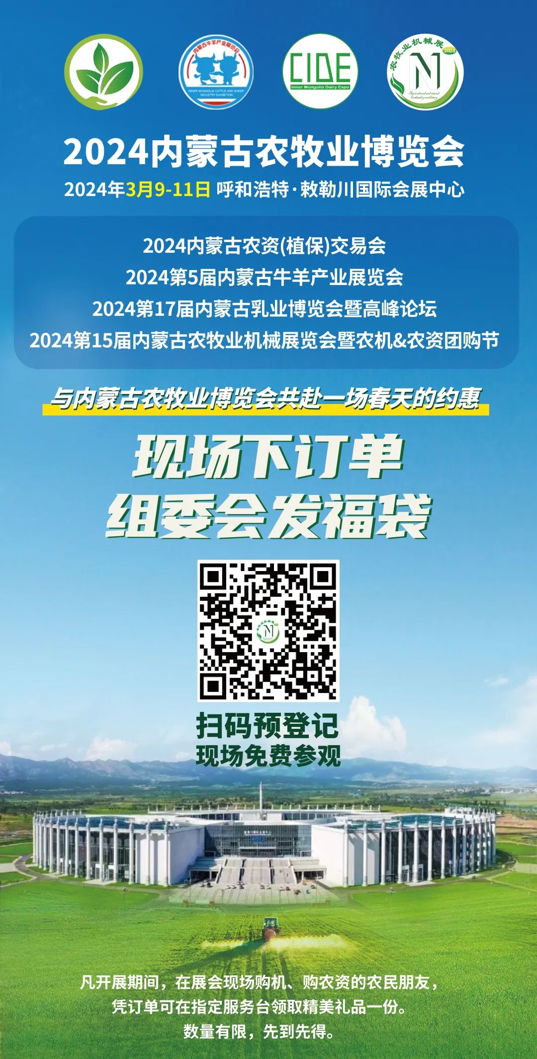 本次展會(huì)由艾克思博國際會(huì)展集團(tuán),內(nèi)蒙古農(nóng)牧業(yè)產(chǎn)業(yè)化龍頭企業(yè)協(xié)會(huì)、上海博朝展覽服務(wù)有限公司聯(lián)合舉辦,大會(huì)同期還將舉辦2024內(nèi)蒙古農(nóng)牧業(yè)博覽會(huì)、2024第17屆內(nèi)蒙古乳業(yè)博覽會(huì)暨高峰論壇、2024第5屆內(nèi)蒙古牛羊產(chǎn)業(yè)展覽會(huì)、2024內(nèi)蒙古農(nóng)資(植保)交易會(huì),今年展會(huì)整體規(guī)模更大、產(chǎn)品更加豐富,展品從農(nóng)機(jī)裝備、牛羊養(yǎng)殖、乳品工業(yè)、農(nóng)資植保乃至品牌終端,覆蓋農(nóng)牧業(yè)全產(chǎn)業(yè)鏈高端人脈,充分滿足農(nóng)牧民朋友的采購需求。如您有一站式采購需求,請一定不要錯(cuò)過本場行業(yè)盛會(huì)。
