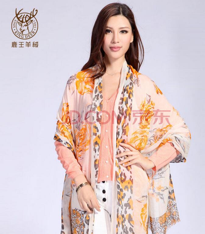 鹿王羊絨官方正品特價山羊絨女款豹紋披肩圍巾兩用薄款