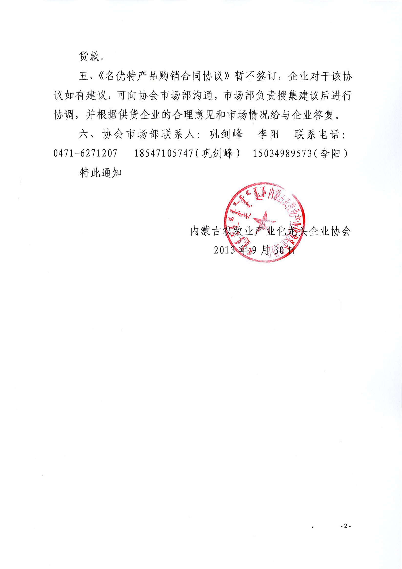 關(guān)于內(nèi)蒙古農(nóng)牧業(yè)產(chǎn)業(yè)化龍頭企業(yè)名優(yōu)特產(chǎn)品在專賣店展銷的補(bǔ)充通知