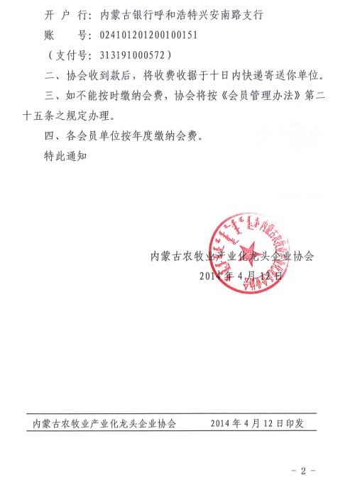 關于收繳會費的通知