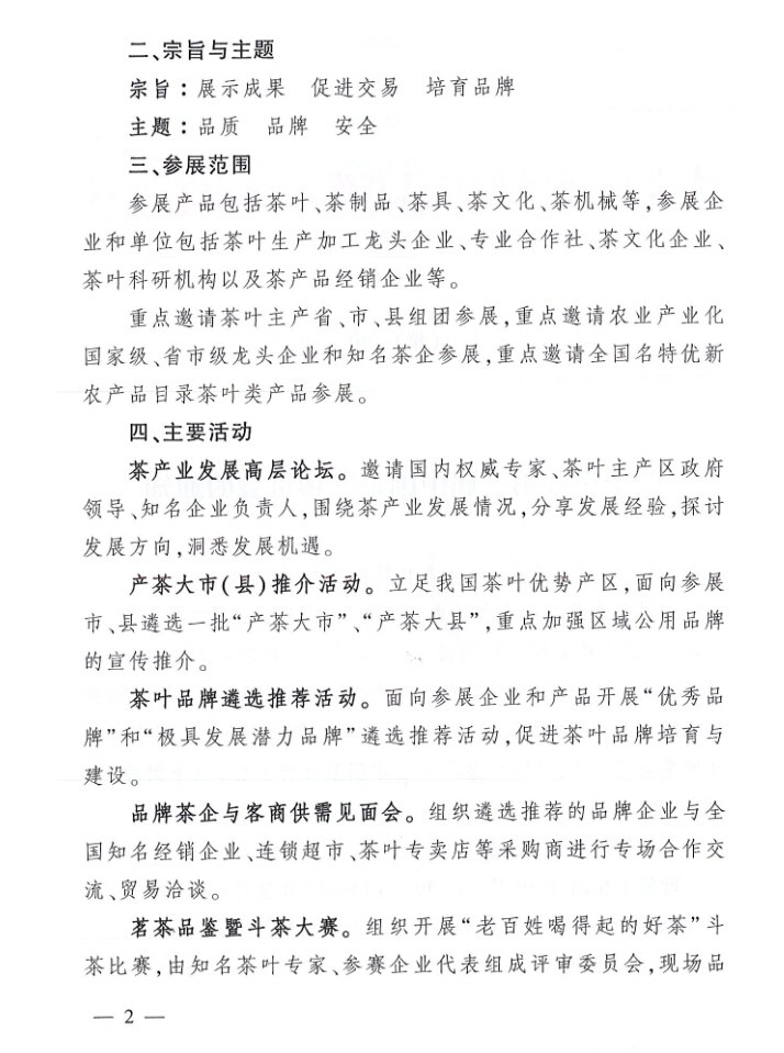 關(guān)于舉辦第三屆中國茶葉博覽會的通知