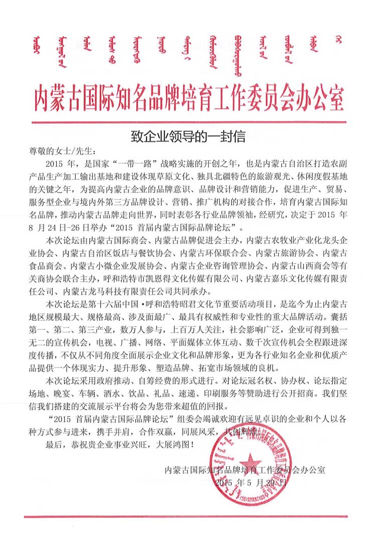 關(guān)于參加“2015首屆內(nèi)蒙古國(guó)際品牌論壇”的通知