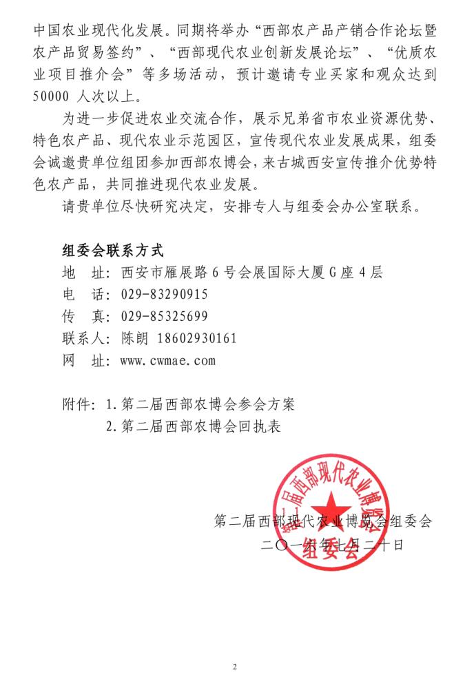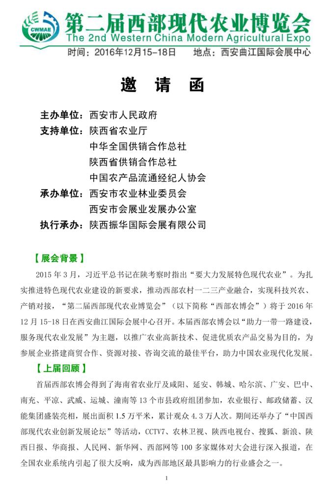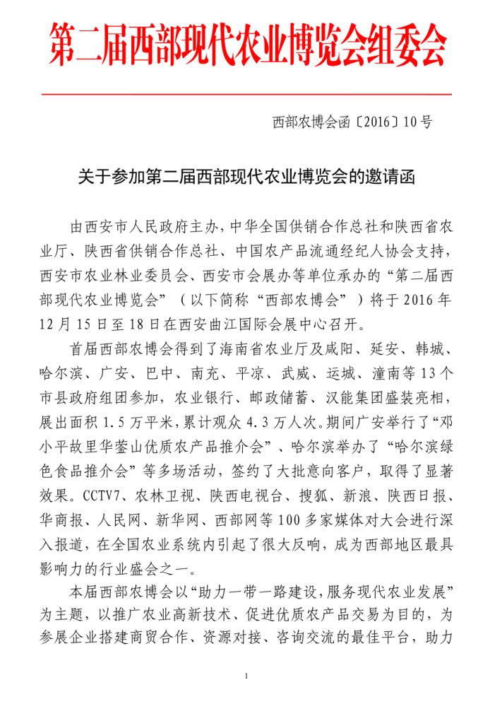 關于參加第二屆西部現(xiàn)代農(nóng)業(yè)博覽會的邀請函