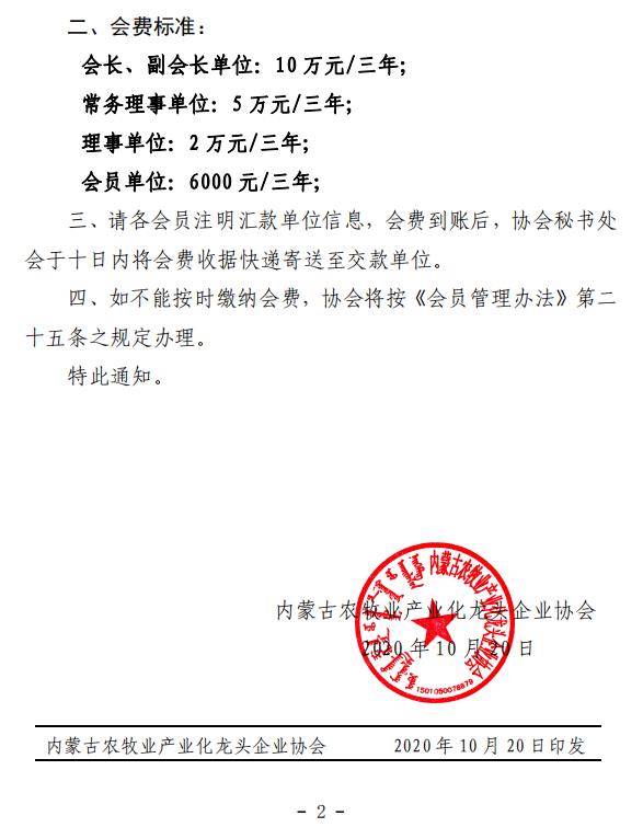 農(nóng)協(xié)會字【2020】8號關(guān)于收繳會費(fèi)的通知