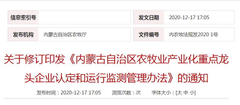 信息來源于:內蒙古自治區(qū)農牧廳鏈接地址:http://nmt.nmg.gov.cn/gk/zfxxgk/xxgkml/xztz/202012/t20201217_177842.html