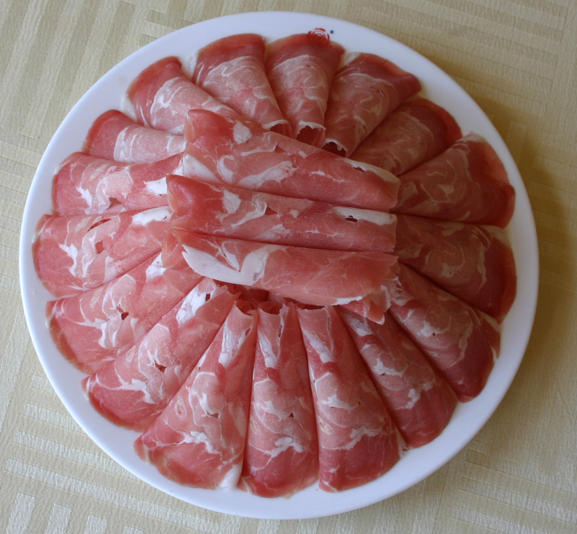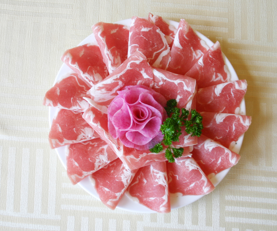 七、   杜泊羊肉卷:選用原料:采用南非引進的杜伯羊,經(jīng)過雜交改良的品種。肉中脂肪分布均勻,胴體品質(zhì)高。經(jīng)選修之后,全部按照肥瘦搭配制成羊肉卷。一涮即熟、就涮不老。