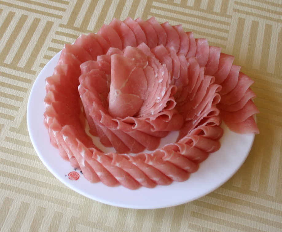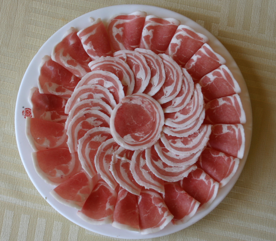 六、   尾坯:選用原料:去掉云皮、血線之后的整羊尾油,經(jīng)過特殊工藝之后,碼制而成。其特點是切片薄如紙、勻如晶,口感不膻不膩。